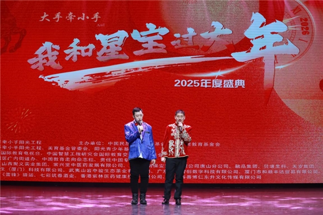 1月30日下午,由大手牵小手阳光工程发起,中国民族文化艺术基金会、希贤教育基金会联合主办,美育基金管委会、阳光青少年基金管委会联合承办的“汇聚力量·点燃希望”——大手牵小手“我和星宝过大年”暨2025年度盛典在中国宋庆龄青少年科技文化交流中心隆重举行。